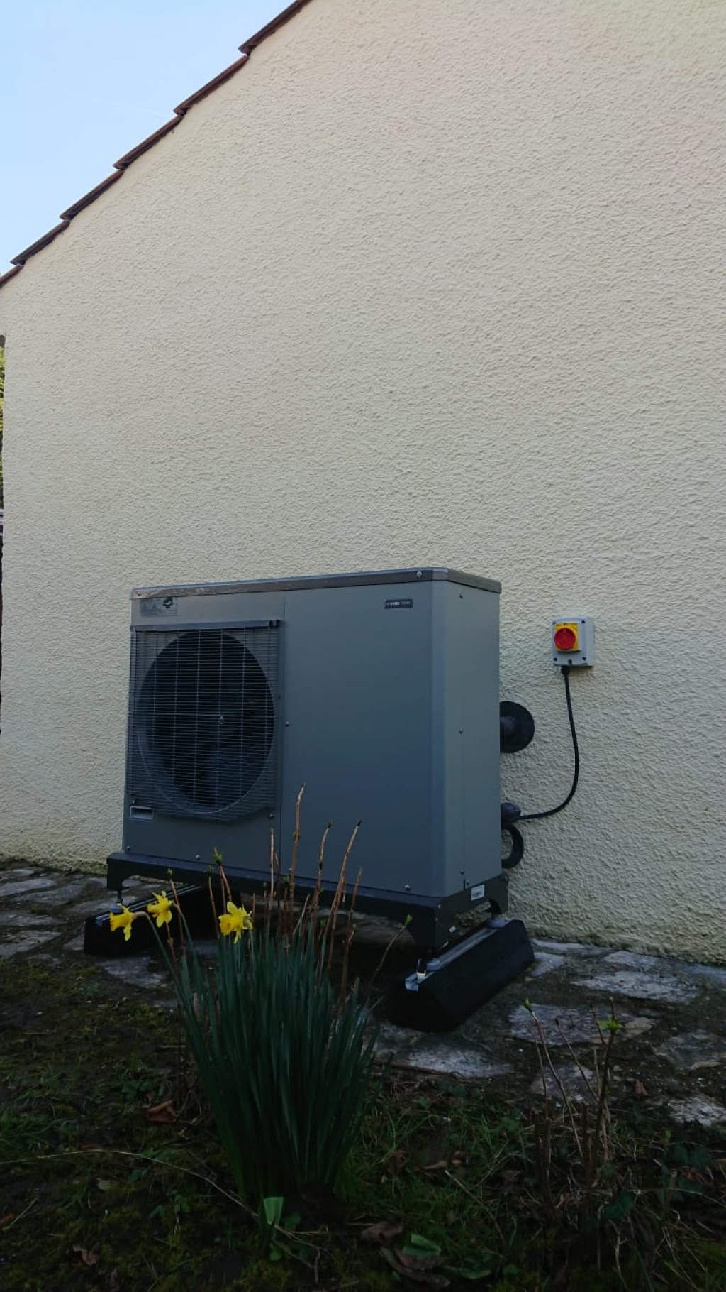 Installation d'une pompe à chaleur Air / Eau de marque NIBE de 12 kW en remplacement d'une chaudière gaz non condensation, sur une installation de radiateurs avec production d'eau chaude sanitaire, pour une maison de 140 m².. Après une étude thermique réalisée par nos soins la consommation chauffage sera divisée par 3: passant de 1500 € à 560€.