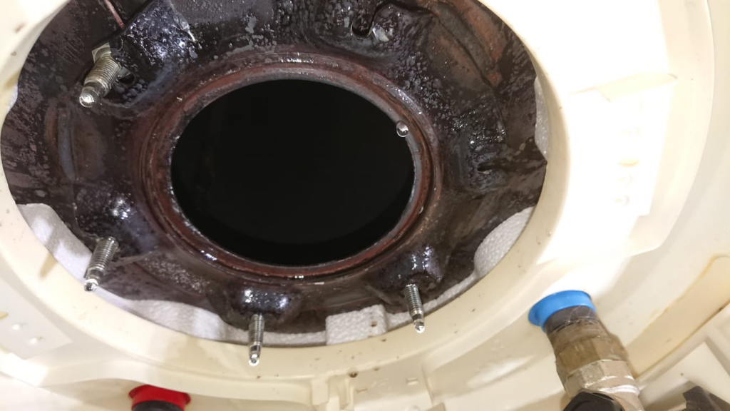 Après démontage du corps de chauffe nous avons retiré 5 kg de calcaire et remplacé l'ensemble corps de chauffe, Anode et résistance. Une inspection de la cuve à la caméra à permis de vérifier son état et de décider de ne remplacer que le corps de chauffe, économisant ainsi un remplacement de cumulus.