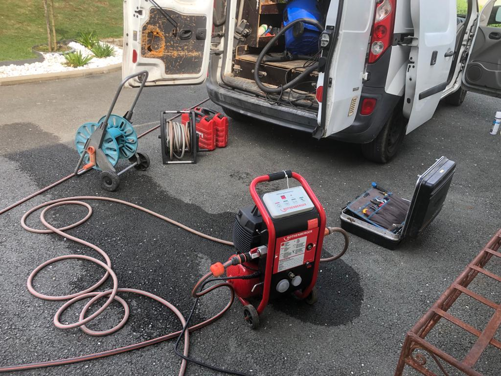 Aquitaine Géothermie vous propose une solution de nettoyage et désembouage hydrodynamique de votre plancher chauffant et/ou radiateurs, avec le désemboueur Ropuls de chez Rothenberger. Intervention à Lignan-de-Bordeaux, en Gironde.
