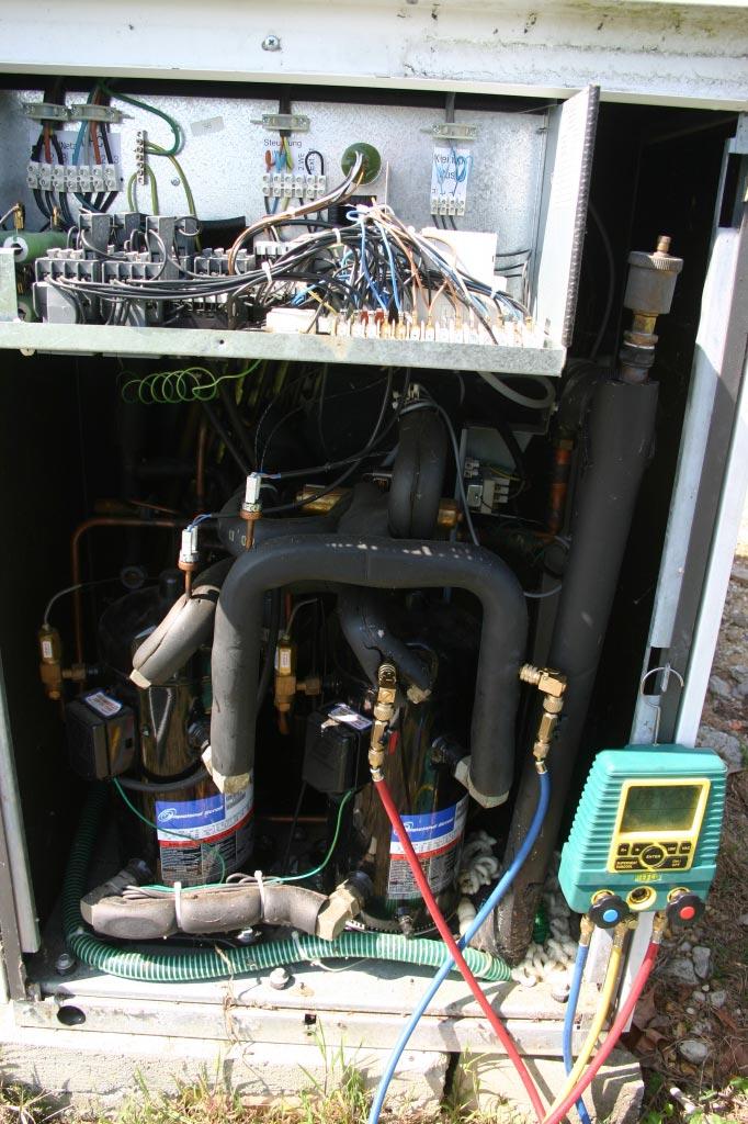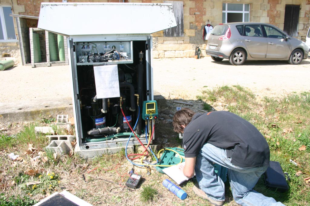 Installation d'une pompe à chaleur Air / Eau de marque STIEBEL ELTRON de 30 kW (COP 3,8) et d\'une chaudière de marque BUDERUS en relève d'installation. Elle assure le chauffage par plancher chauffant et la production d\'eau chaude sanitaire avec un ballon de 300 litres pour un restaurant et vestiaire d'un Golf.